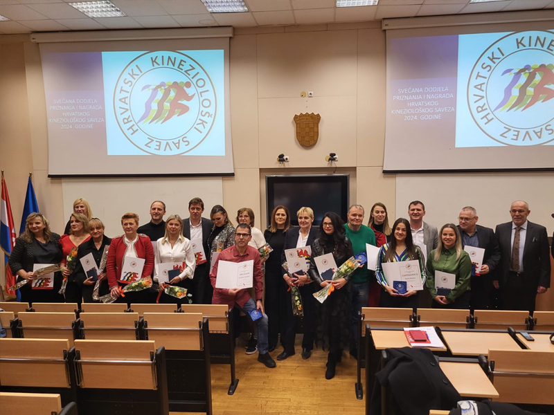 Na Kineziološkom fakultetu u Zagrebu je u petak, 29. 11. 2024. održana svečana dodjela godišnjih nagrada i priznanja Hrvatskog kineziološkog saveza. Ova svečana dodjela se održava više od 40 godina i nagrađuje zaslužne kineziologe u tri kategorije: 1. Priznanje za uspješan rad, 2. Zahvalnica za uspješan dugogodišnji rad i 3. Povelja za životno djelo „Zaslužni kineziolog“.